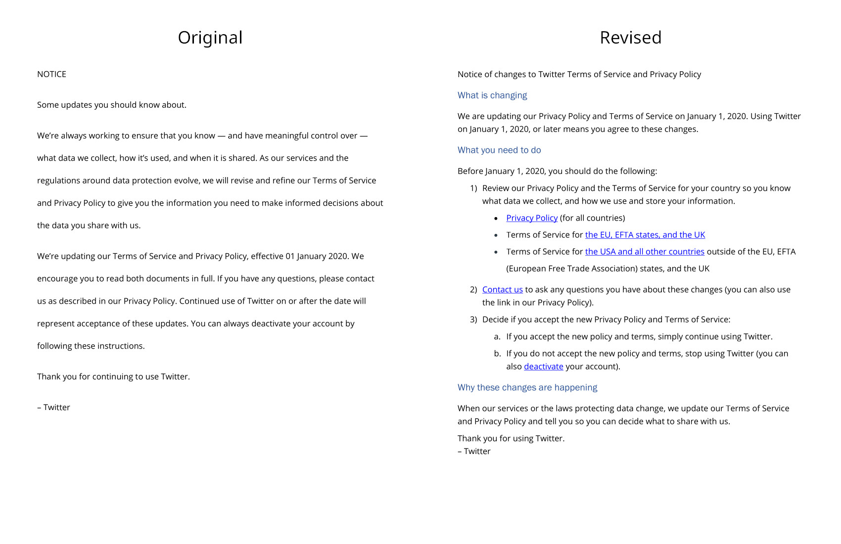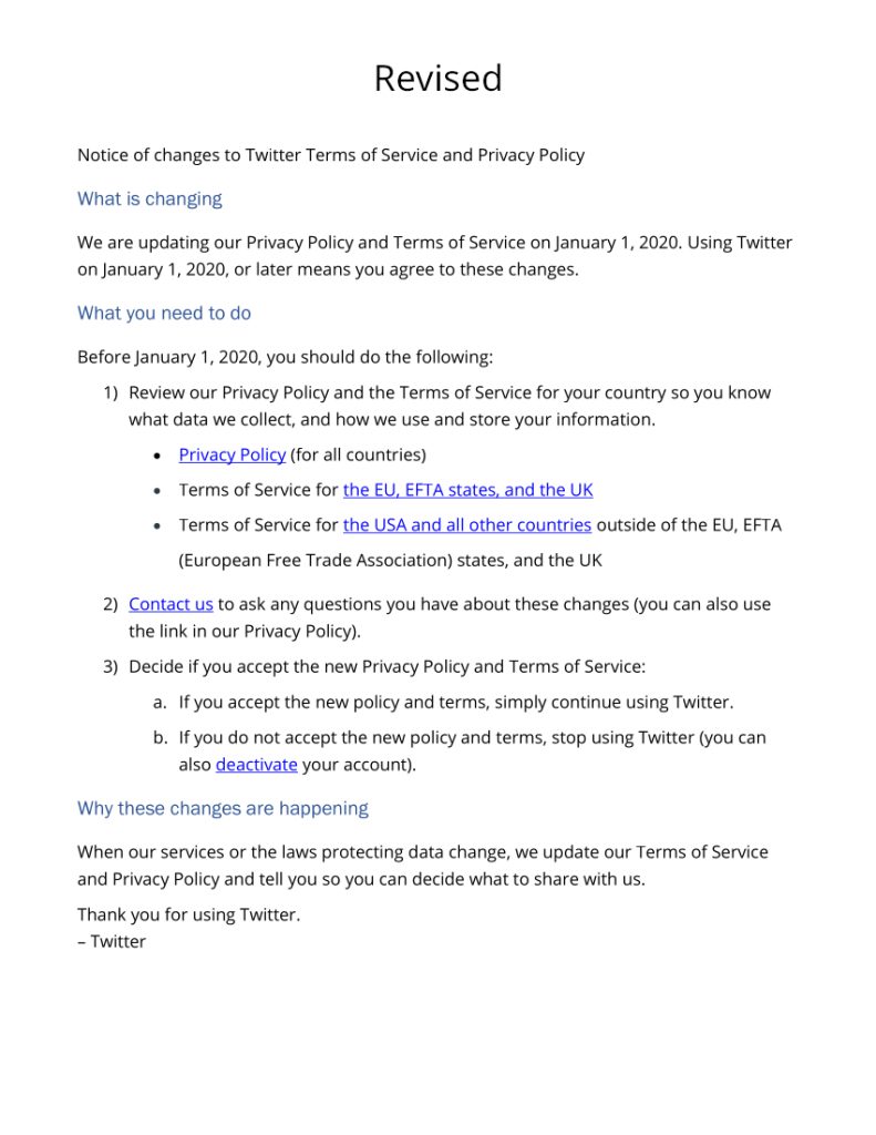 Customer memo (TOS update)