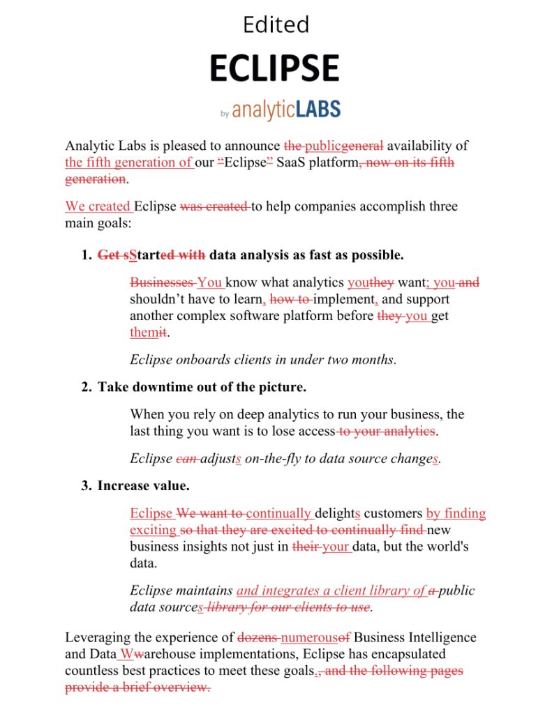 Product release copy edit